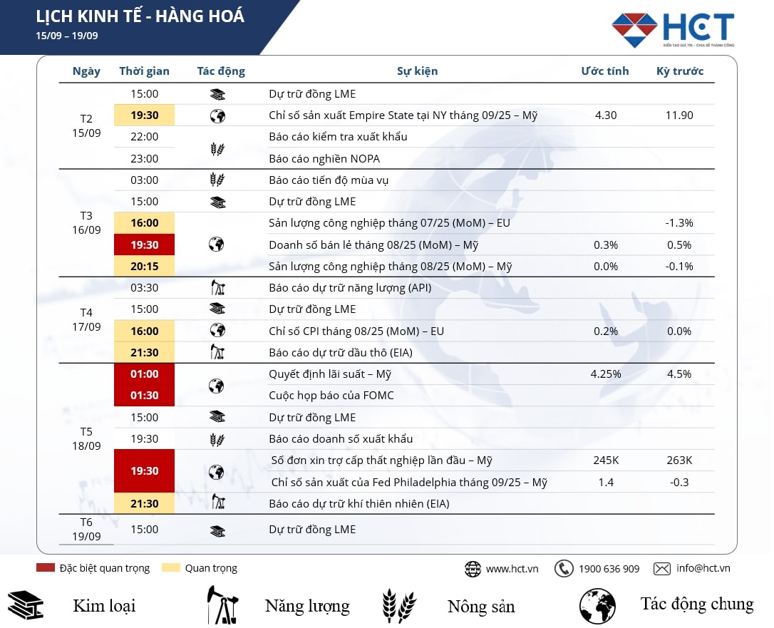 * Sự kiện quan trọng nhất tuần này là cuộc họp của Fed (FOMC) vào ngày 16–17/9, nơi thị trường gần như chắc chắn kỳ vọng mức lãi suất quỹ liên bang sẽ được giảm 25 điểm cơ bản, từ vùng 4,25–4,50% xuốn...