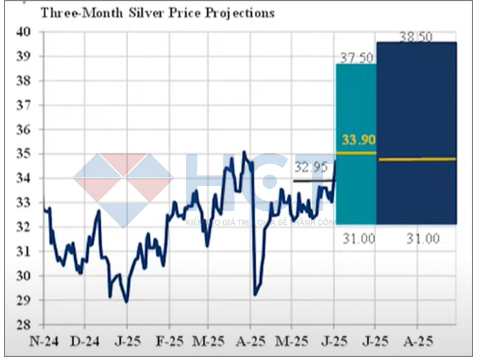 Trong ngắn hạn (3 tháng tới), giá bạc có thể dao động trong vùng 31 – 38,5 USD/ounce, với khả năng xuất hiện các cú tăng giá mạnh ngắn hạn lên 40 USD do dồng tiền đầu cơ. Tuy nhiên, sau giai đoạn đáo hạn hợp đồng tháng 7, thị trường có thể điều chỉnh giảm nếu không có thêm yếu tố hỗ trợ mới.