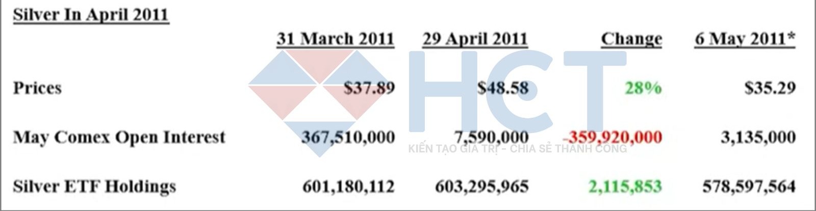 Giá bạc từng tăng mạnh trong năm 2011 do hoạt động tất toán hợp đồng nhưng đã giảm mạnh sau đó