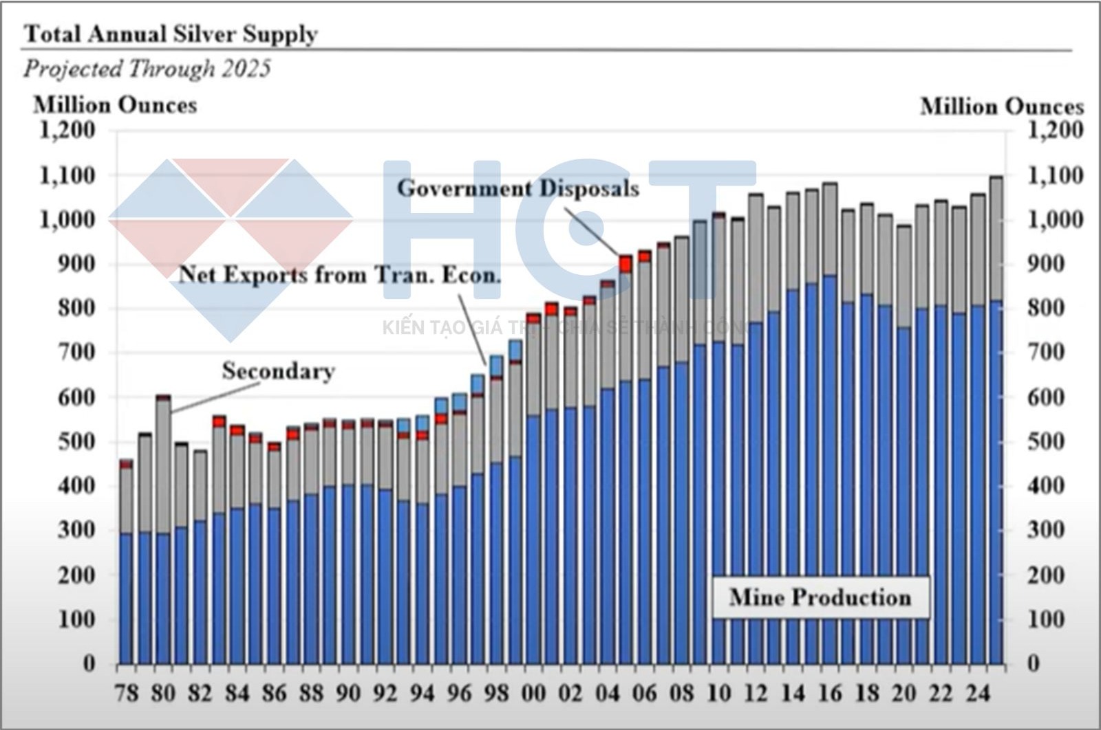 Tổng lượng bạc tồn kho trên sàn COMEX hiện vượt 500 triệu ounce – mức cao kỷ lục. Ngoài ra, còn có một lượng lớn bạc nằm rải rác tại các kho thương mại ở Mỹ, châu Âu và châu Á, đặc biệt là Trung Quốc. Điều này cho thấy nguồn cung bạc trên toàn cầu vẫn rất dồi dào.