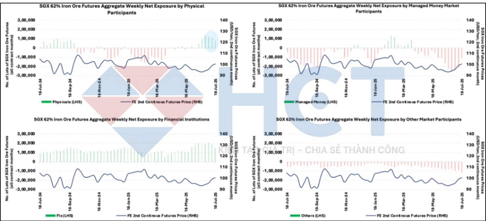 Giá hợp đồng tương lai quặng sắt chạm đỉnh nhiều tháng sau khi Trung Quốc công bố dự án thủy điện 1,2 nghìn tỷ nhân dân tệ tại Tây Tạng, kỳ vọng kích cầu thép và vật liệu xây dựng. Tuy nhiên, đà tăng hạ nhiệt khi lo ngại về bất động sản trở lại. Dư nợ vay bất động sản tháng 6 lên mức cao nhất hai năm (53,33 nghìn tỷ nhân dân tệ) nhờ chính sách hỗ trợ, nhưng đầu tư yếu và giá nhà giảm vẫn gây áp lực cho ngành.