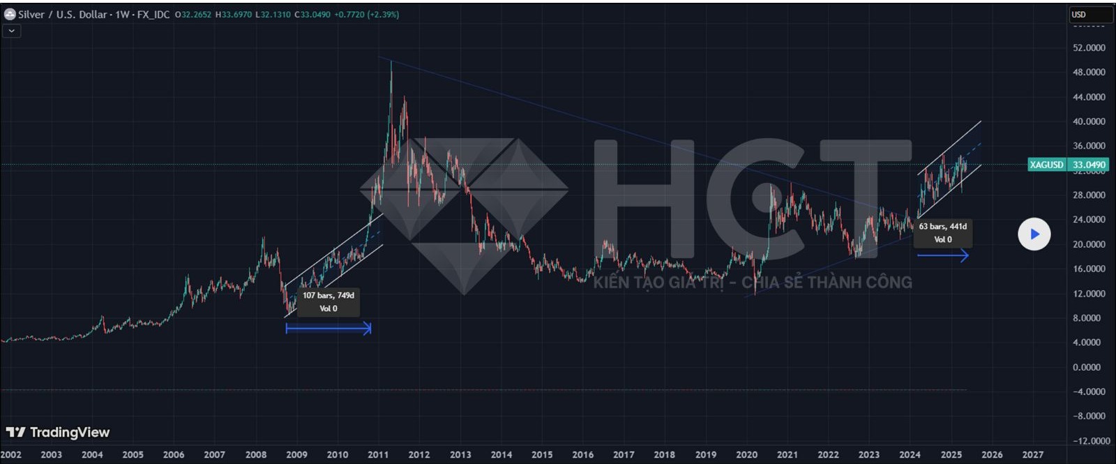 Nhìn chung, mặc dù giá bạc hiện có thể dao động quanh mức 32 USD/oz trong ngắn hạn, nhưng xu hướng tăng dài hạn dự kiến sẽ kéo dài đến 2027. Bạc vẫn là một kênh đầu tư hấp dẫn trong dài hạn, không chỉ nhờ vai trò tích trữ mà còn bởi tiềm năng ứng dụng trong công nghiệp xanh và số hóa. Giai đoạn 2025–2027 có thể sẽ chứng kiến những diễn biến tích cực cả về giá và dòng tiền đầu tư vào bạc.