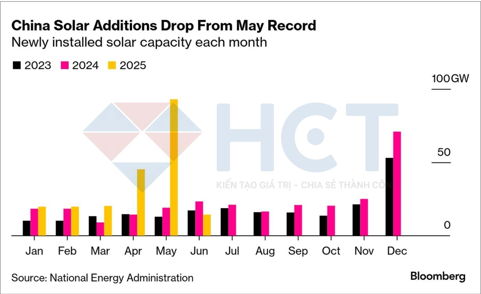 Lượng lắp đặt pin mặt trời tại Trung Quốc tăng cao kỷ lục trong tháng 5, trước khi giảm vào tháng 6