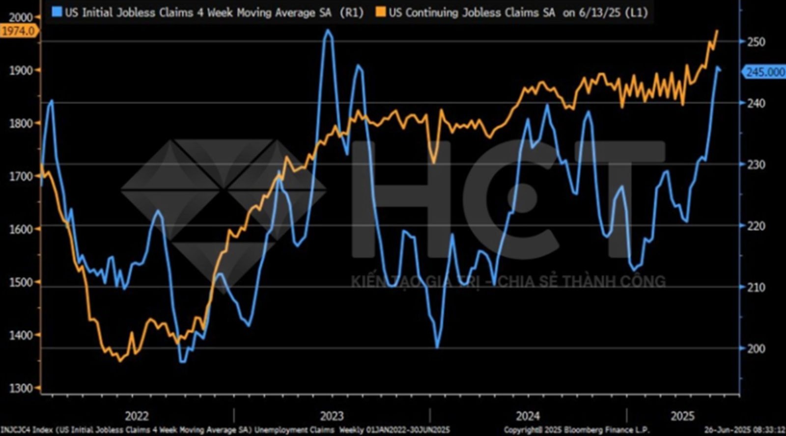 Một trong những chỉ báo sớm cho thấy thị trường lao động tháng 6 yếu đi là số người tiếp tục nhận trợ cấp thất nghiệp tiếp tục gia tăng. Các nhà kinh tế UBS cho biết các dữ liệu đều chỉ ra rằng thị trường lao động đã liên tục suy yếu trong 6–8 tuần qua và dự báo số việc làm mới trong tháng 6 chỉ đạt 100.000.