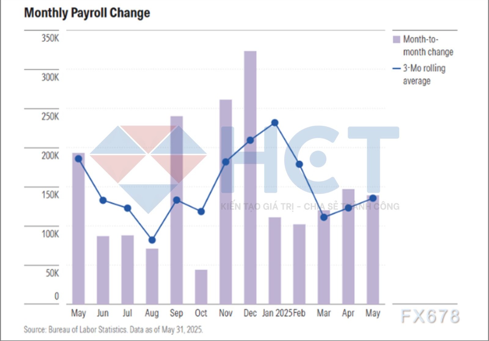 Tăng trưởng việc làm đã giảm rõ rệt trong quý I/2025 và chỉ phục hồi nhẹ vào tháng 4–5, phản ánh xu hướng hạ nhiệt của thị trường lao động Mỹ
