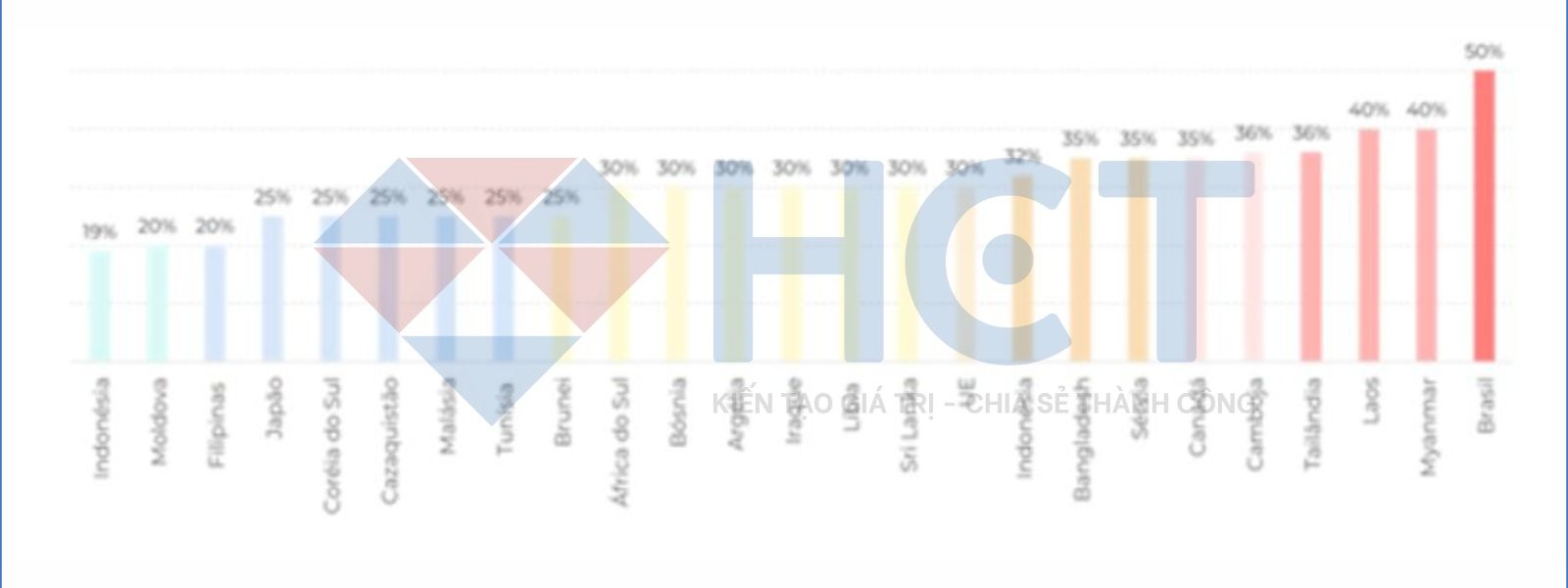Mức áp thuế của Hoa Kỳ đối với các quốc gia, trong đó Brazil đang là một trong số các quốc gia có mức cao nhất -50%