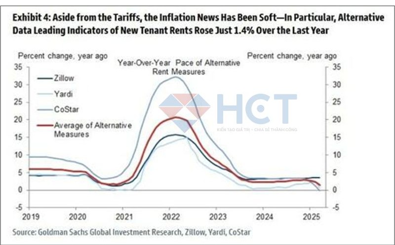 Trên thực tế, các dữ liệu gần đây về giá thuê nhà và lạm phát lõi đều đang giảm, cho thấy áp lực giá đang hạ nhiệt. Giá thuê nhà mới – nhóm chiếm tỷ trọng lớn trong rổ CPI – chỉ tăng 1.4% trong năm qua.