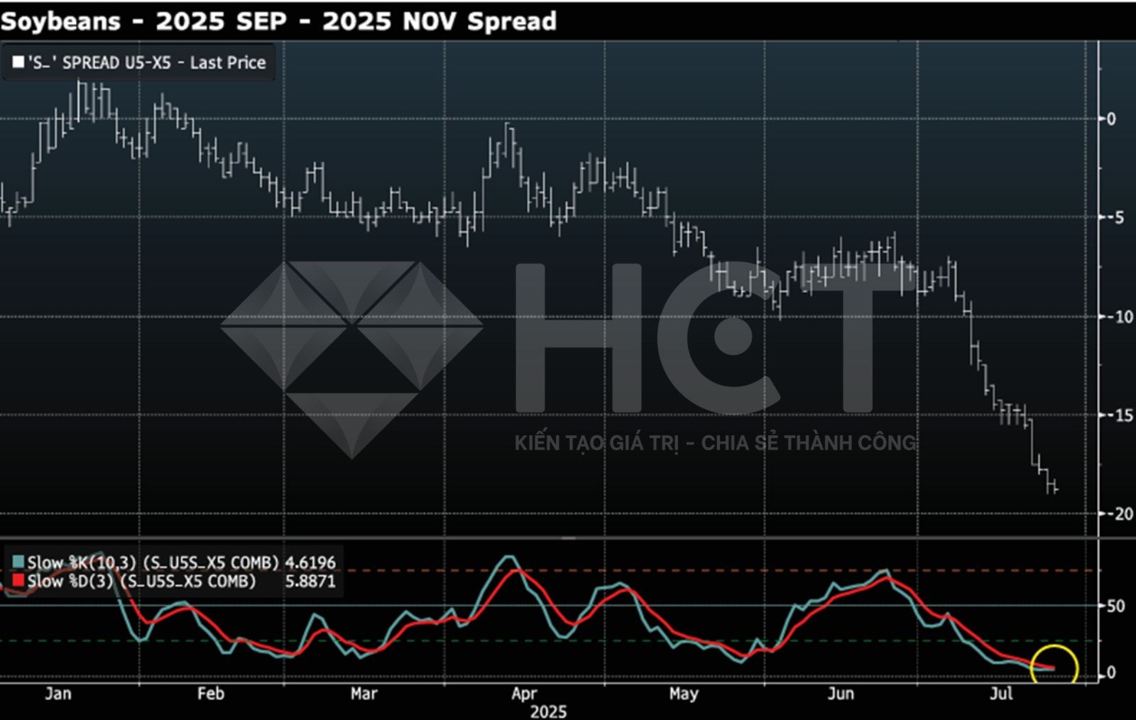 Rủi ro hiện nay là thị trường có thể đang đánh giá chưa đúng mức độ hạn hẹp của nguồn cung đậu tương vụ cũ trong giai đoạn cuối tháng 8 đến đầu tháng 9. Nếu nhu cầu từ phía các nhà máy chế biến tiếp tục duy trì ở mức cao mà người bán vẫn giữ hàng trong kho, hợp đồng kỳ hạn tháng 9 có khả năng sẽ lấy lại mức cộng giá so với kỳ hạn tháng 11 đặc biệt trong trường hợp xuất hiện các yếu tố gây cản trở như thời tiết bất lợi hoặc chậm trễ trong thu hoạch vụ mùa mới.