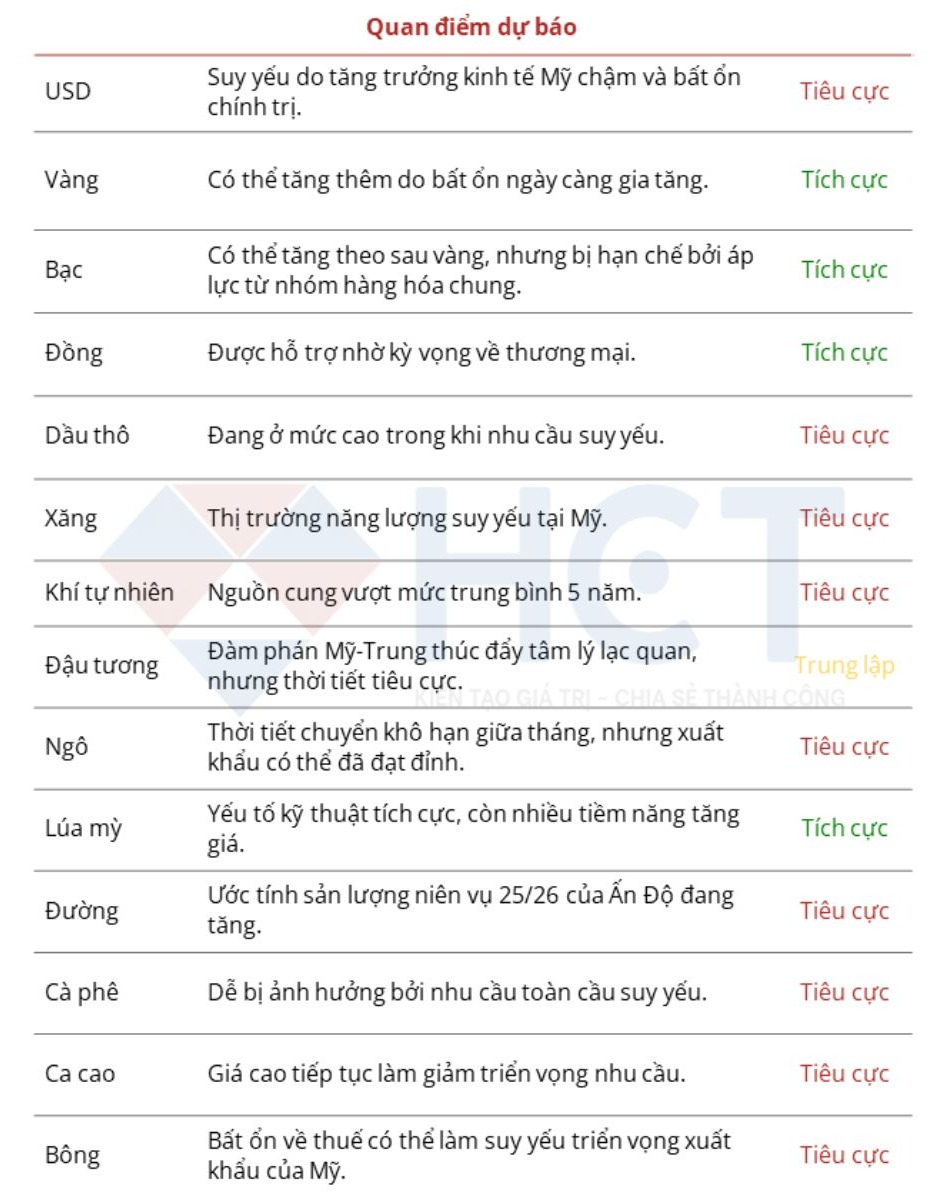 Biến động lớn và áp lực giảm có thể xuất hiện trên các thị trường tài chính cũng như thị trường hàng hóa công nghiệp và nông nghiệp, do các dấu hiệu cho thấy kinh tế Mỹ đang chậm lại. May mắn thay, tốc độ suy giảm của nền kinh tế Mỹ cho đến nay vẫn diễn ra tương đối từ từ và theo từng giai đoạn. Tuy nhiên, xu hướng này nhiều khả năng sẽ gia tăng khi các bất ổn chính trị và kinh tế tiếp tục thổi bùng lo ngại của nhà đầu tư.