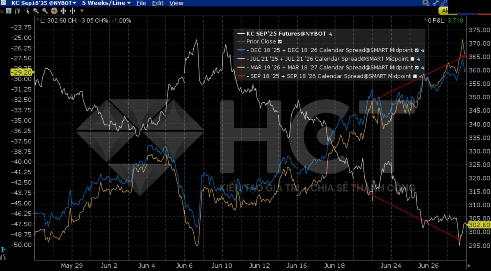 Thị trường cà phê Arabica trên Sàn giao dịch New York: Chênh lệch giá giữa các kỳ hạn tiếp tục suy yếu, cho thấy giá cà phê có thể vẫn chưa thiết lập đáy và đà giảm hiện tại có thể chưa kết thúc.