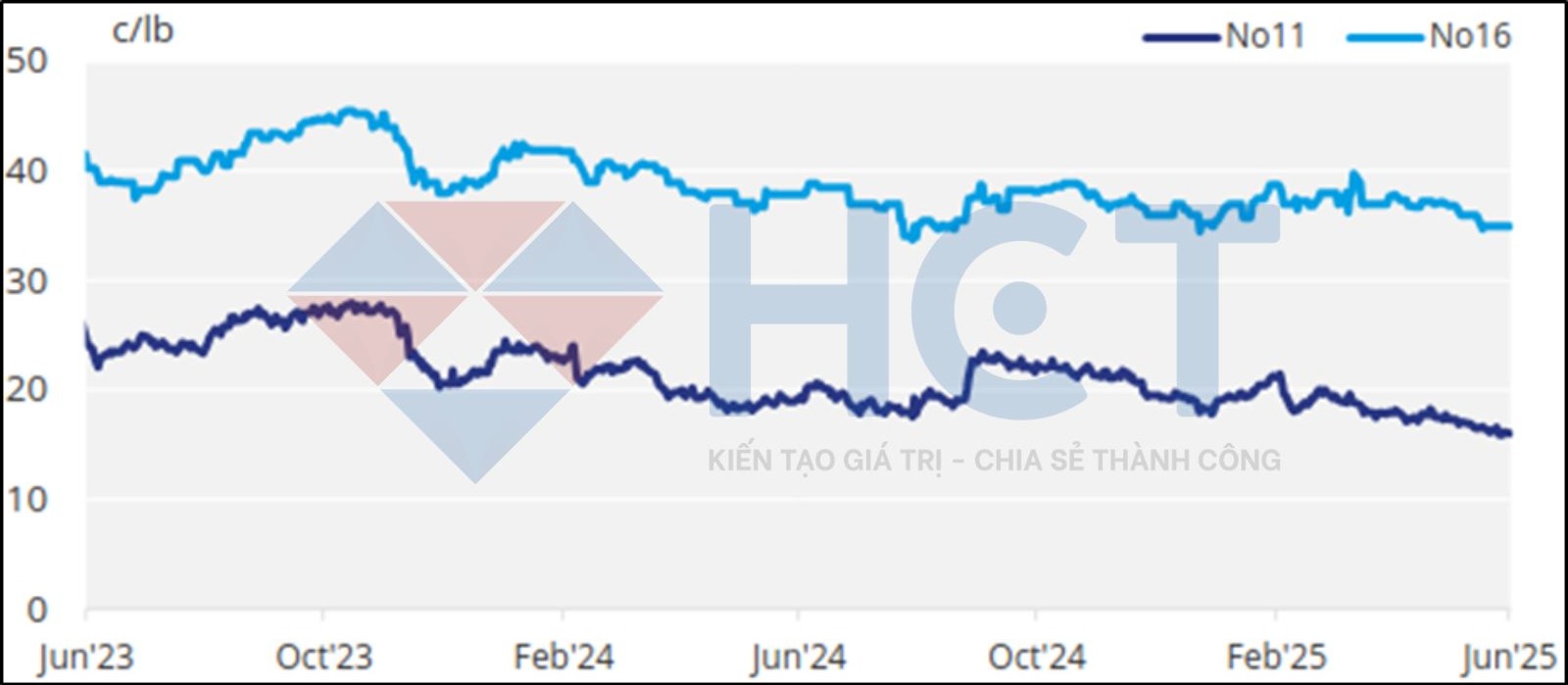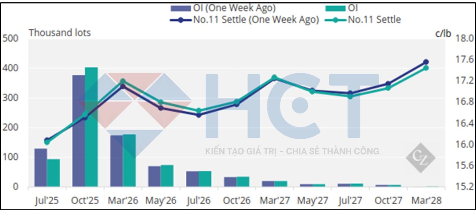 Về kỹ thuật, đường cong hợp đồng tương lai đường No. 11 đã tăng ở các kỳ hạn từ tháng 7/2025 đến tháng 3/2027, cho thấy kỳ vọng cải thiện trong trung hạn, tuy nhiên giá kỳ hạn ở các mốc xa hơn và gần hơn lại suy yếu, phản ánh sự thận trọng của thị trường về triển vọng dài hạn và ngắn hạn.