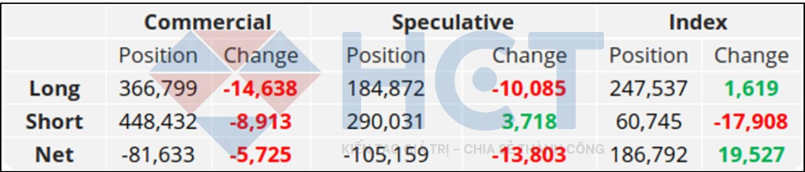 Hiện tại, vị thế bán ròng của nhóm đầu cơ đang ở mức -105.200 hợp đồng.