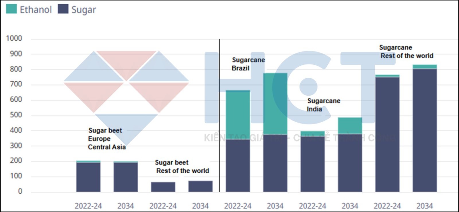 Brazil đóng vai trò then chốt với khả năng tăng cường diện tích trồng mía, thực hiện luân canh, cơ giới hóa và tái canh các diện tích mía già cỗi, góp phần nâng cao năng suất bình quân và hiệu quả kinh tế. Ấn Độ và Thái Lan cũng chú trọng hiện đại hóa sản xuất thông qua việc phát triển giống mía mới có năng suất cao và sức đề kháng tốt, đồng thời đầu tư vào cải thiện công nghệ chiết xuất nhằm tăng tỷ lệ thu hồi đường từ mía nguyên liệu.