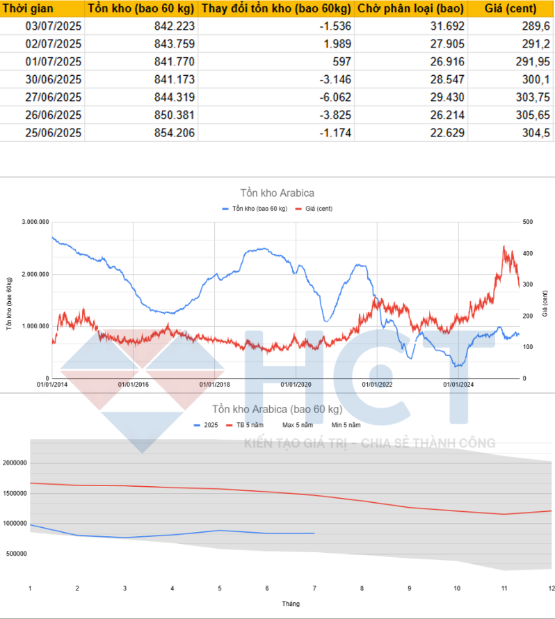 Diễn biến tồn kho Arabica (bao 60 kg)