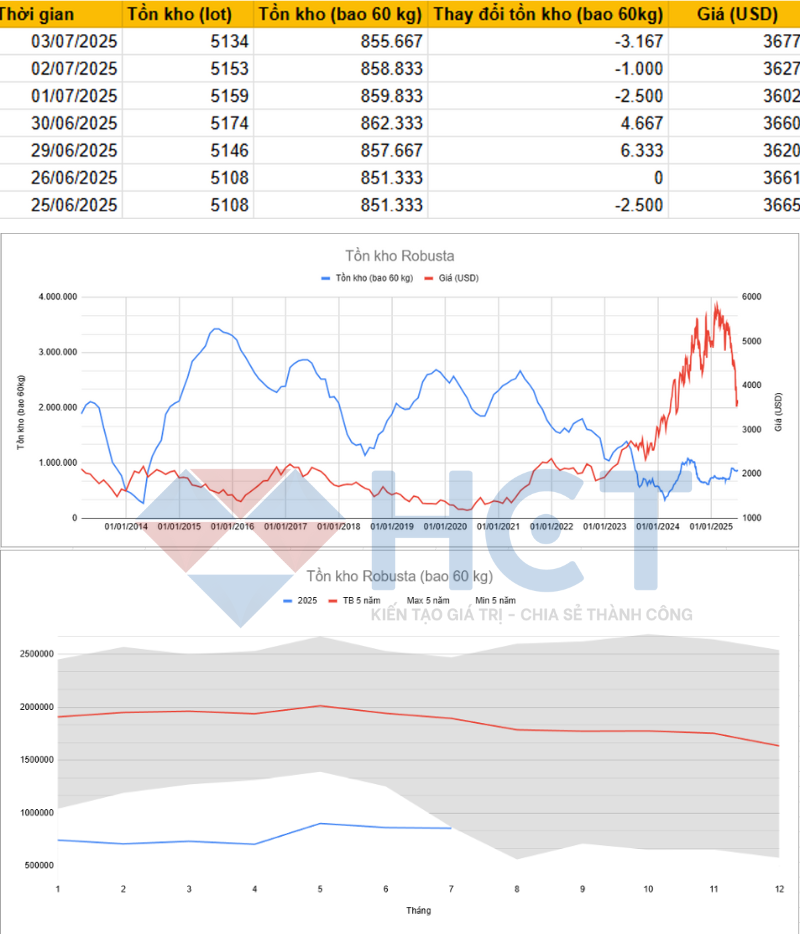Ngày 03/07, giá hồi phục mạnh lên 3677 USD dù tồn kho giảm tiếp 3.167 bao