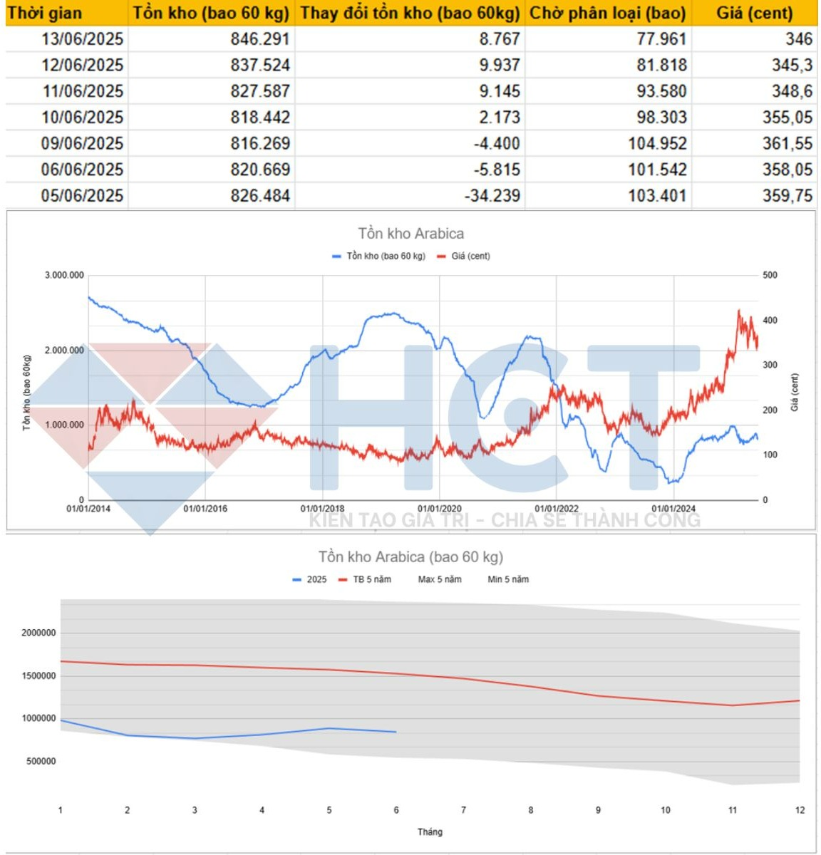 Sau khi chạm đáy ngắn hạn ở mức 818.442 bao vào ngày 10/06, tồn kho Arabica tại ICE EU đã phục hồi liên tục trong 3 phiên gần nhất, cụ thể:
