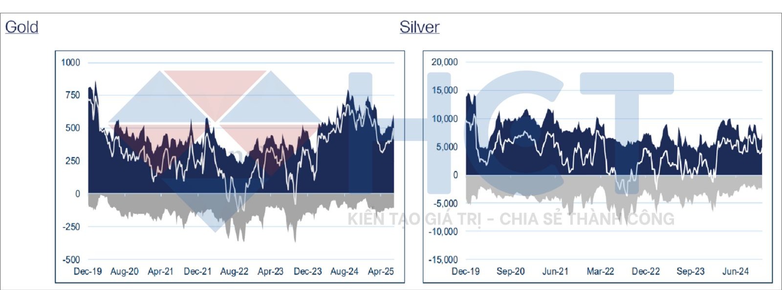 Vị thế ròng của kim loại quý vẫn đang tích cực, không có dấu hiệu tháo chạy từ các quỹ