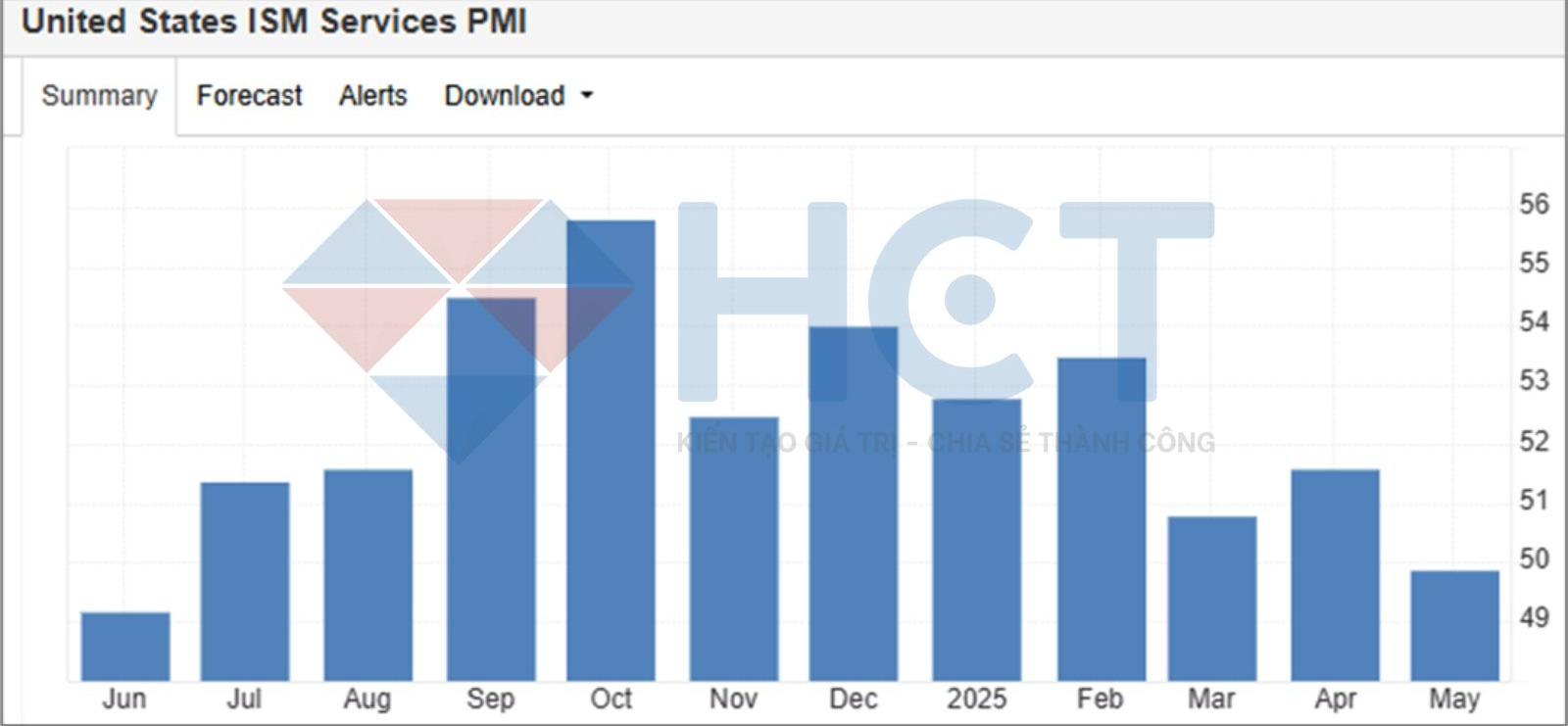 Chỉ số PMI dịch vụ ISM của Mỹ giảm xuống dưới 50 trong tháng 5